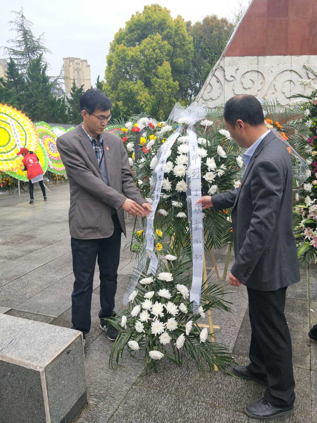 在莊嚴(yán)的革命烈士紀(jì)念碑前,黨支部黨員代表向革命烈士敬獻(xiàn)花籃,全體人員默哀肅立,表達(dá)了對革命烈士的無限哀思。隨后全體黨員在革命烈士紀(jì)念碑前高舉右拳,重溫了入黨誓詞,懷著敬仰的心情進(jìn)一步了解了革命先烈的英雄事跡。
