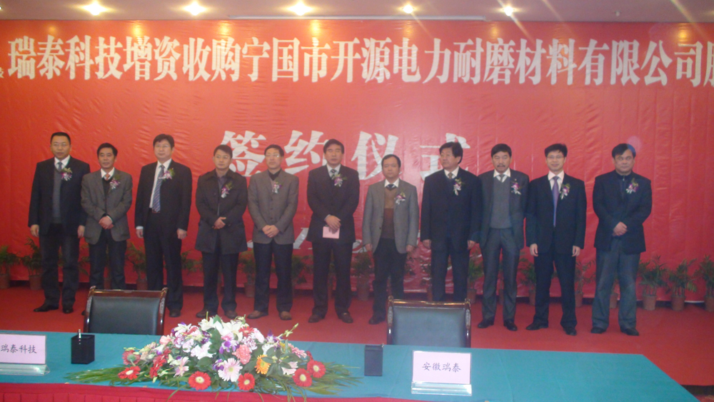 2011年3月6日,瑞泰科技增資收購寧國市開源電力耐磨材料有限公司股權(quán)簽約儀式在寧國市會(huì)議中心隆重舉